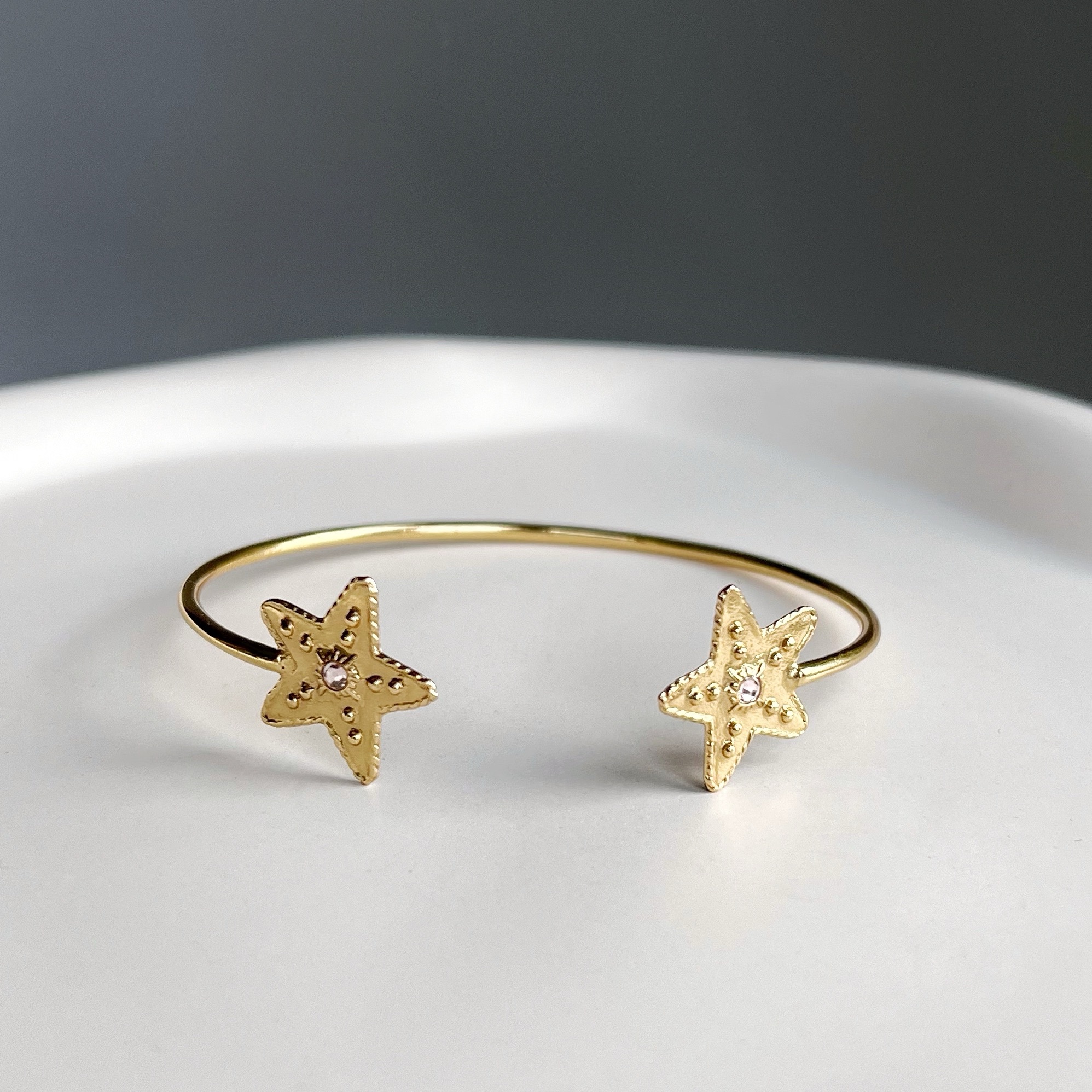 Браслет каркасный со звездами и вставками из кристаллов на запястье до 13-17 см