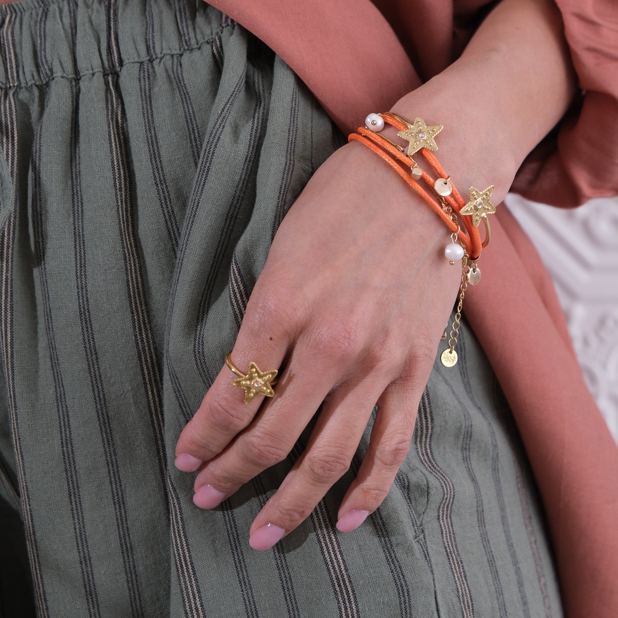 Браслет-кафф (каркасный) ESTRELLA от бренда FRANCK HERVAL со звездами и вставками из кристаллов SWAROVSKI