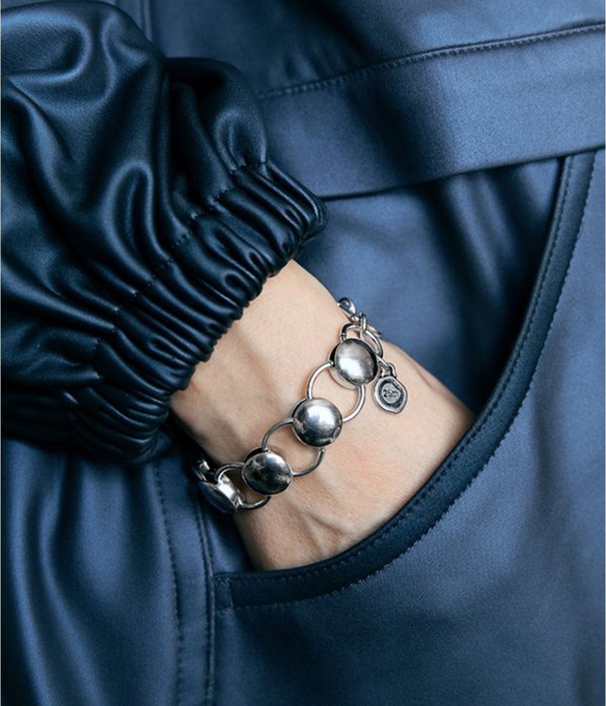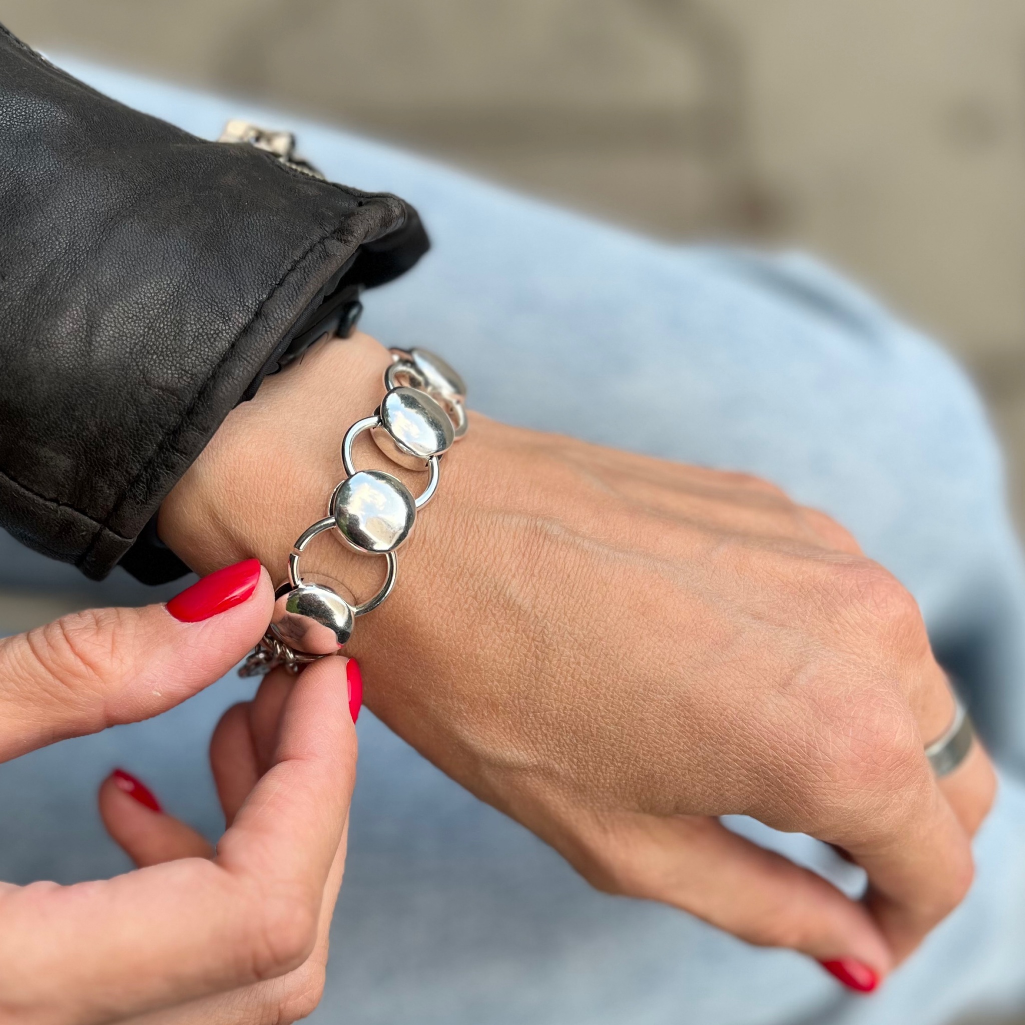 Браслет от испанского бренда CICLON, звенья в виде крупной цепи с круглыми элементами, застежка - тогл, на запястье от 21,0 до 25,0 см
