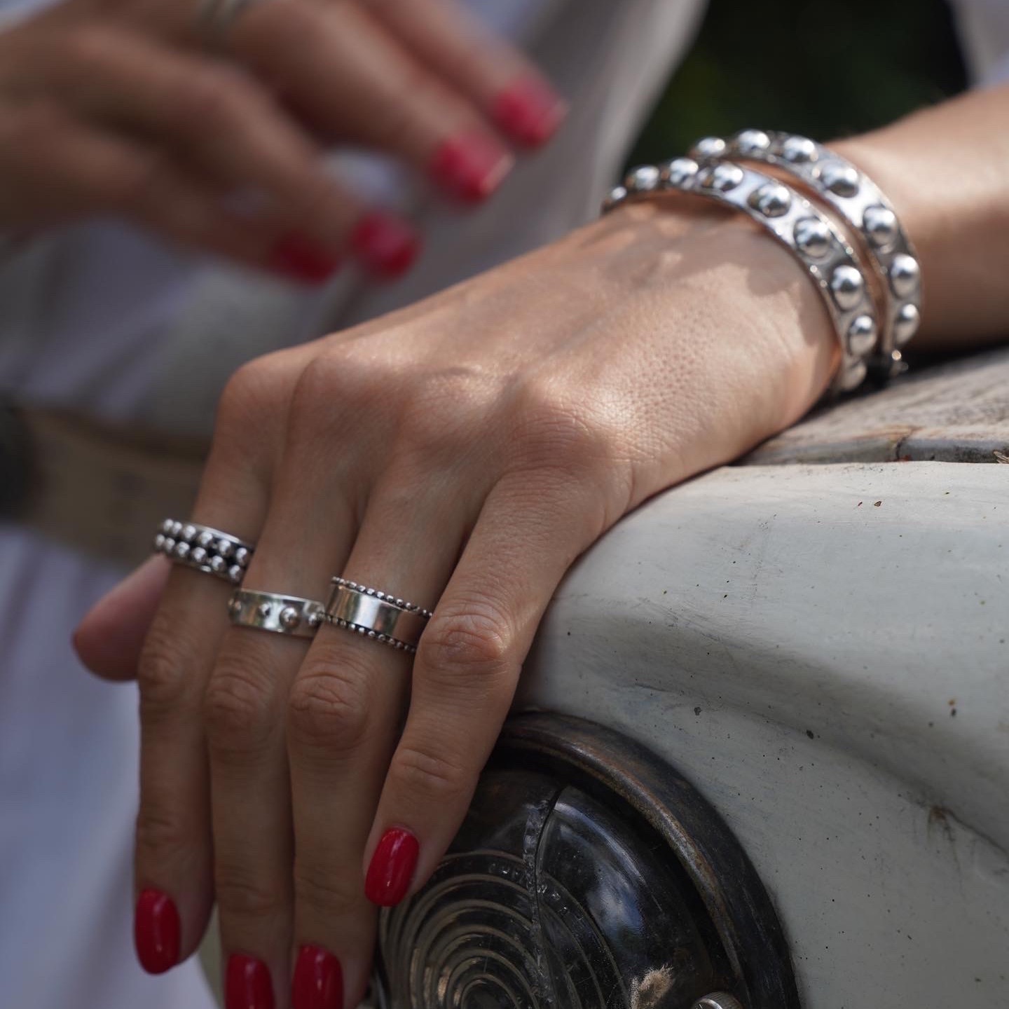 Браслет - кафф от французского бренда ORI TAO с заклепками, на запястье 15,0-17,5 см