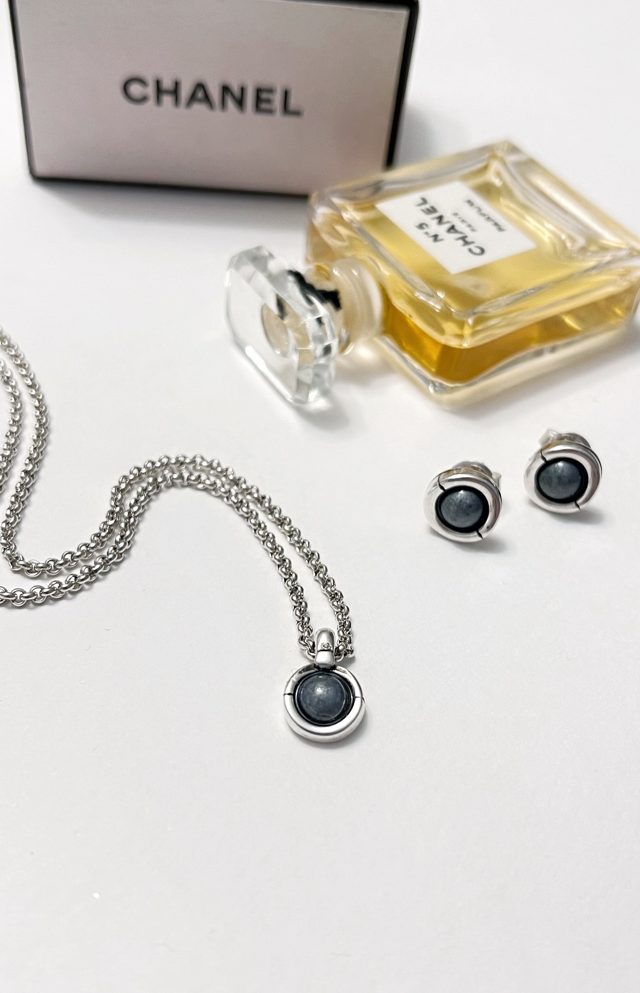 Колье от испанского бренда CICLON коллекция New Cocco с подвесом и вставкой из ювелирной смолы серого цвета, длиной 38 см + 5 см удлиняющая цепь, застежка - карабин