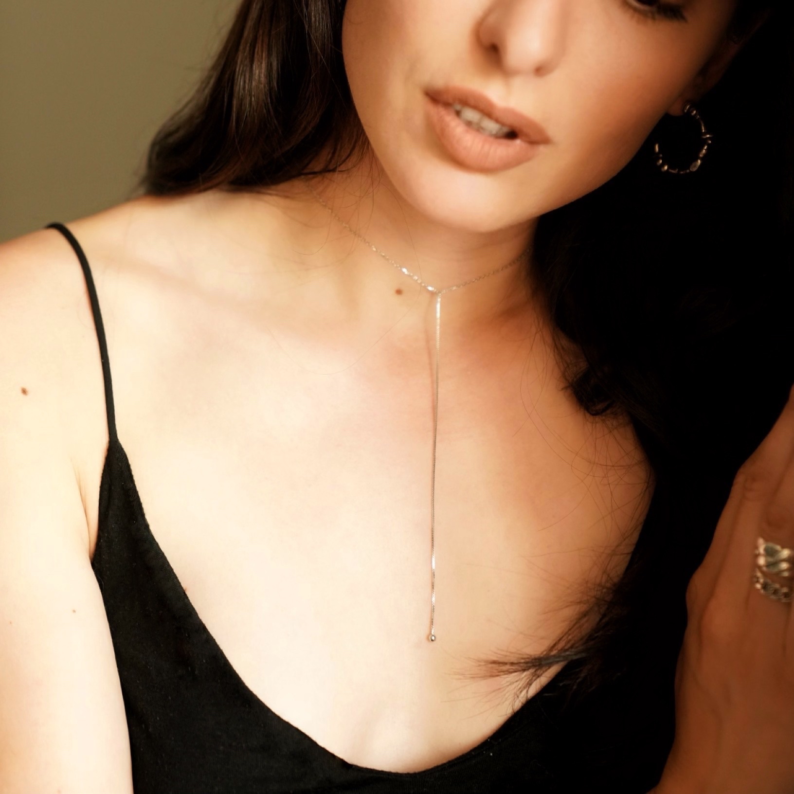 Колье-чокер выполнено из серебра 925 пробы, длиной 32 см + 13,5 см (подвес), застежка-карабин.