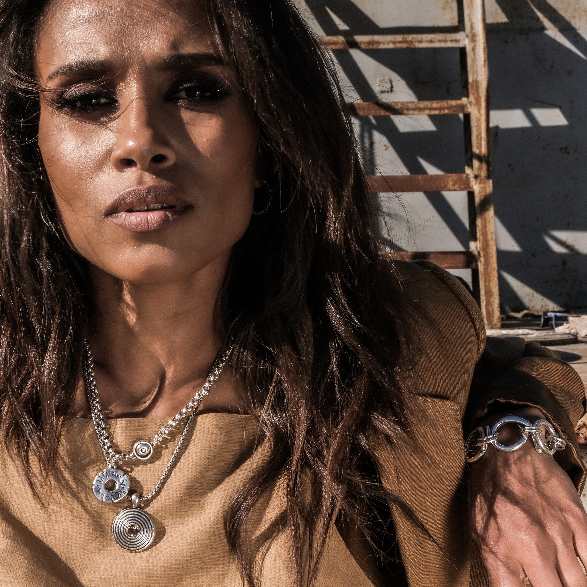Колье выполнено из сплава zamak с щедрым покрытием серебром, вставка из смолы