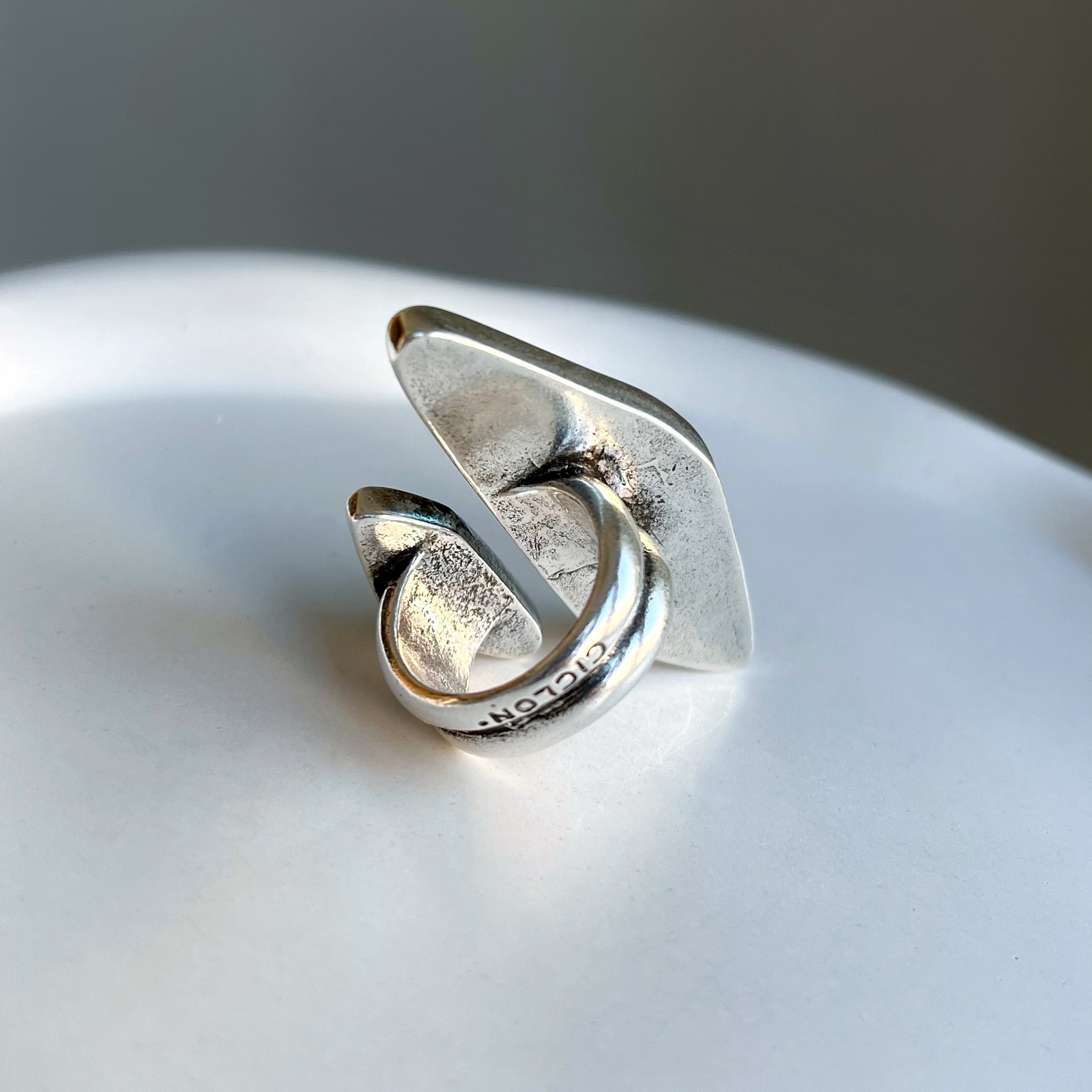 Кольцо ORLIK из коллекции AQUA с вставками из муранского стекла неправильной формы голубого и синего цвета от испанского бренда CICLON, в размере 15,5 - 17,5 мм (разомкнутое).