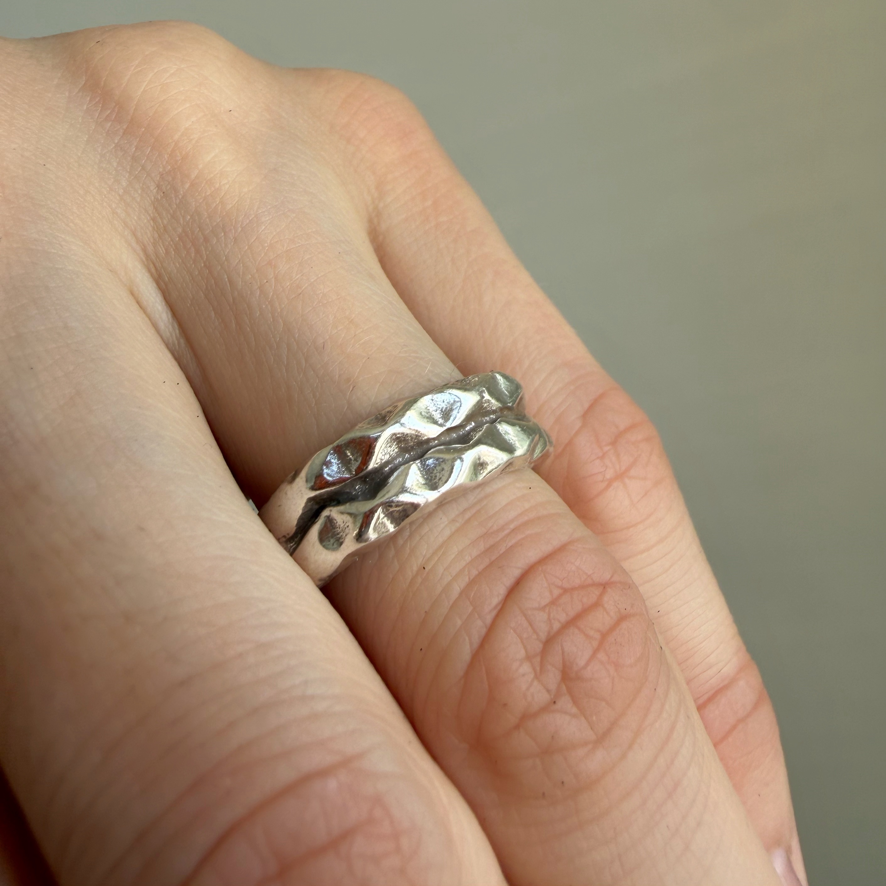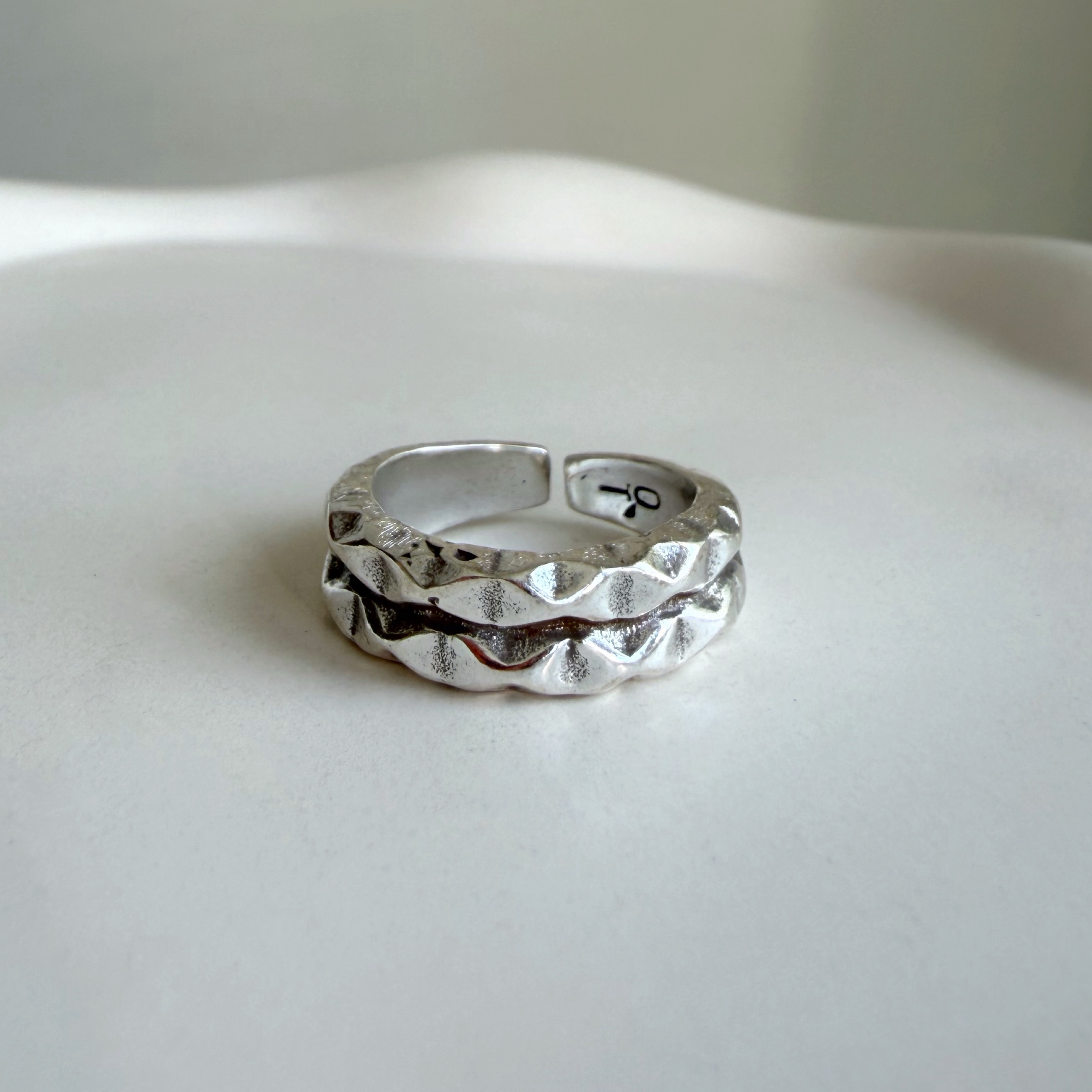 Кольцо с покрытием серебром, мятая фактура