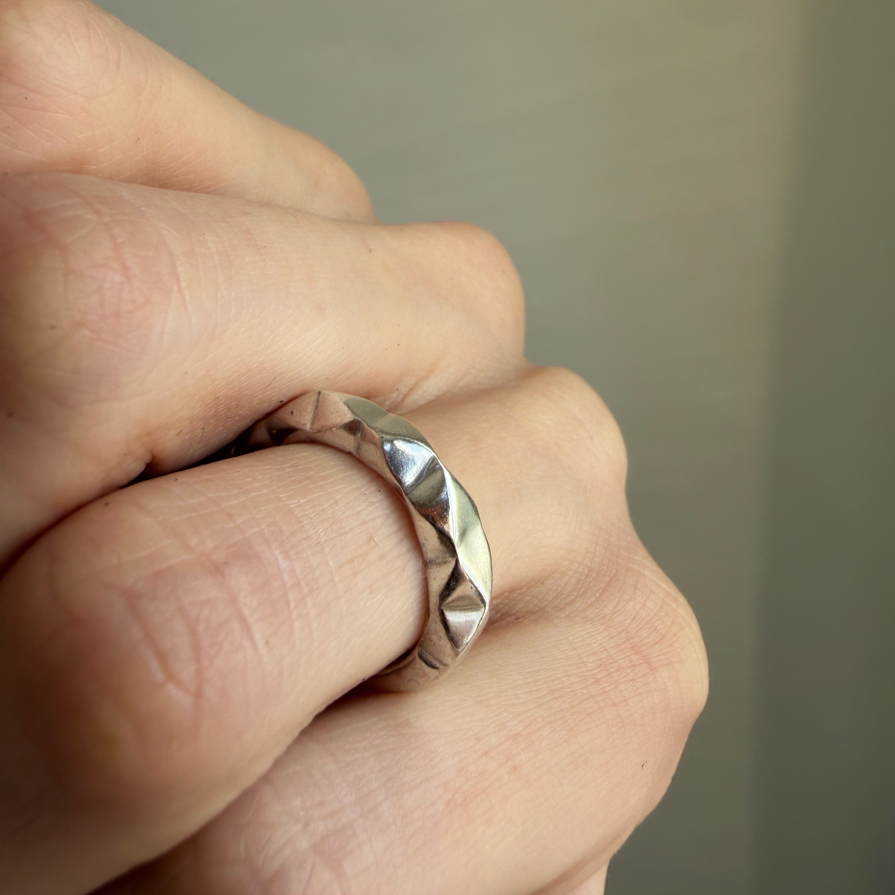 Кольцо с покрытием серебром, мятая фактура