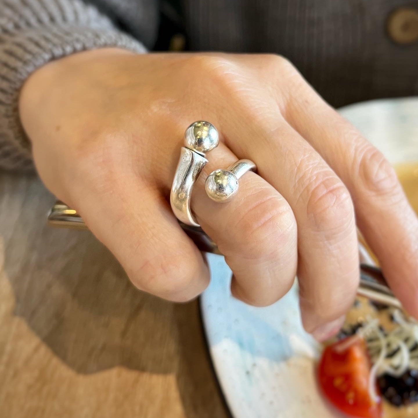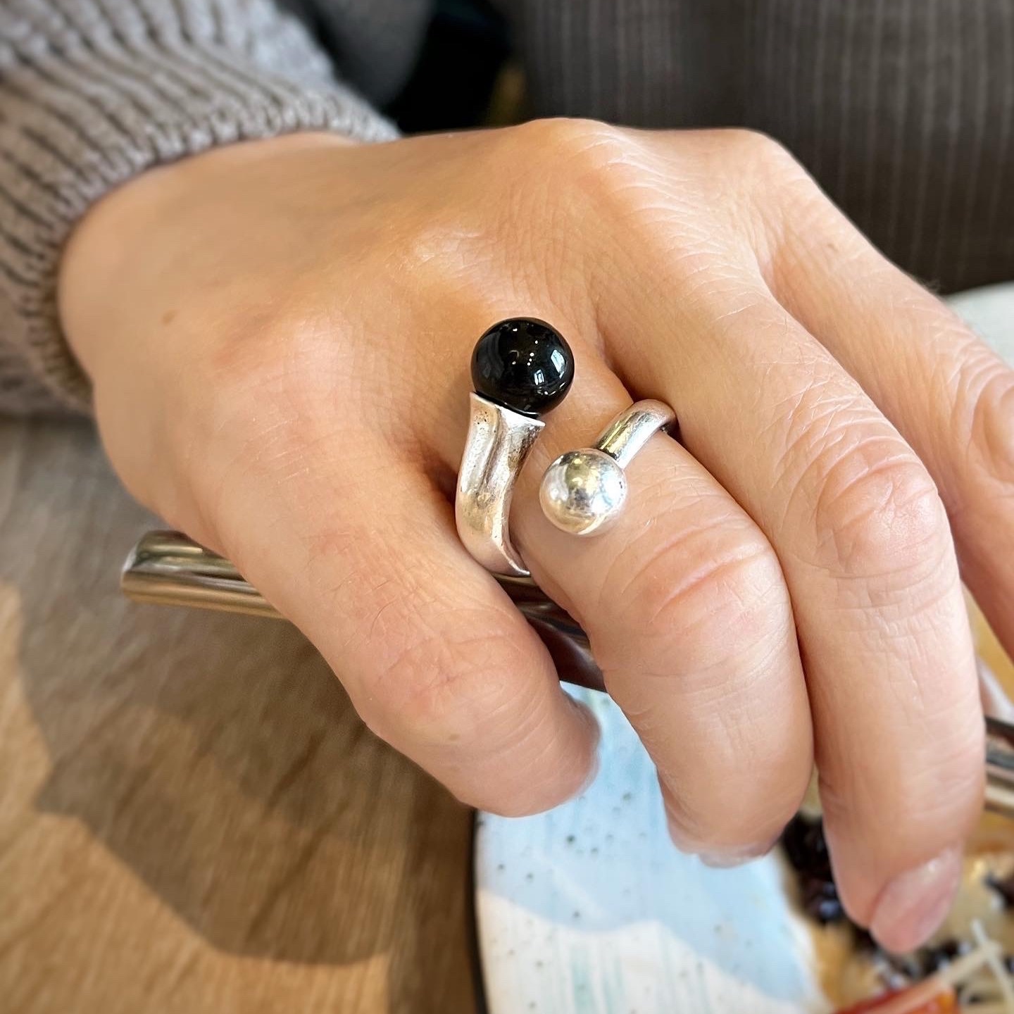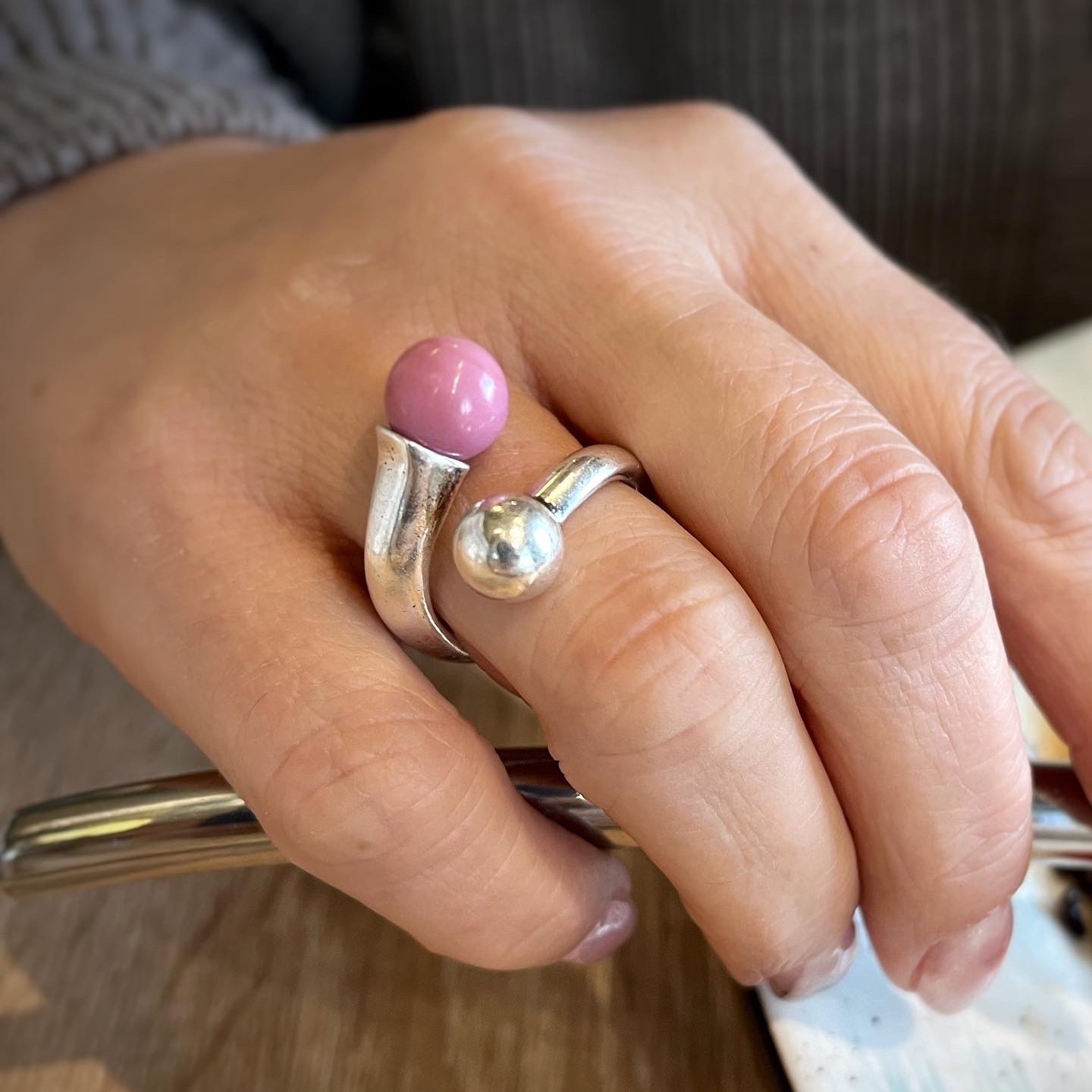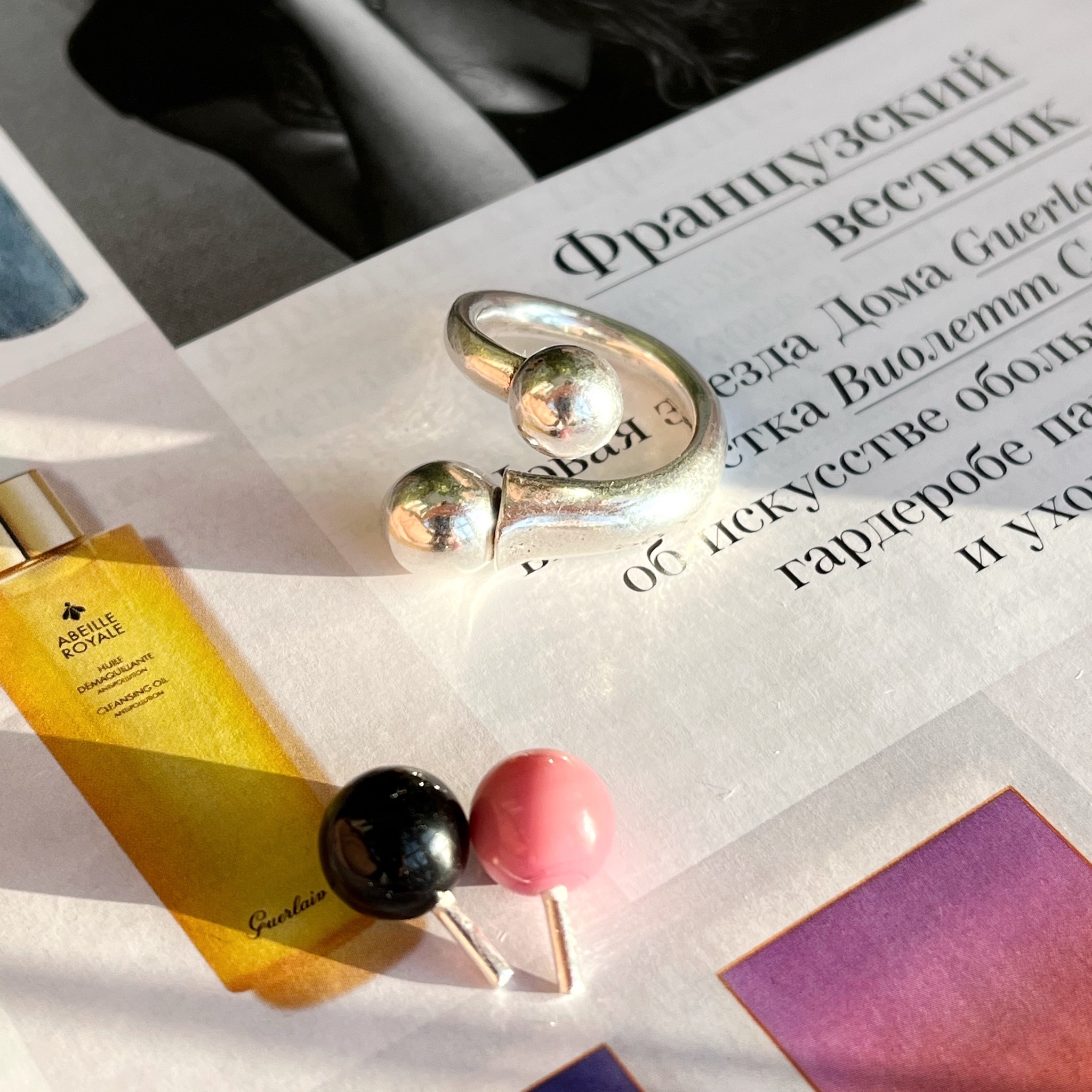 Кольцо от испанского бренда CICLON со сменными элементами из муранского стекла (пыльно-розовый и чёрный), в размере 18,0