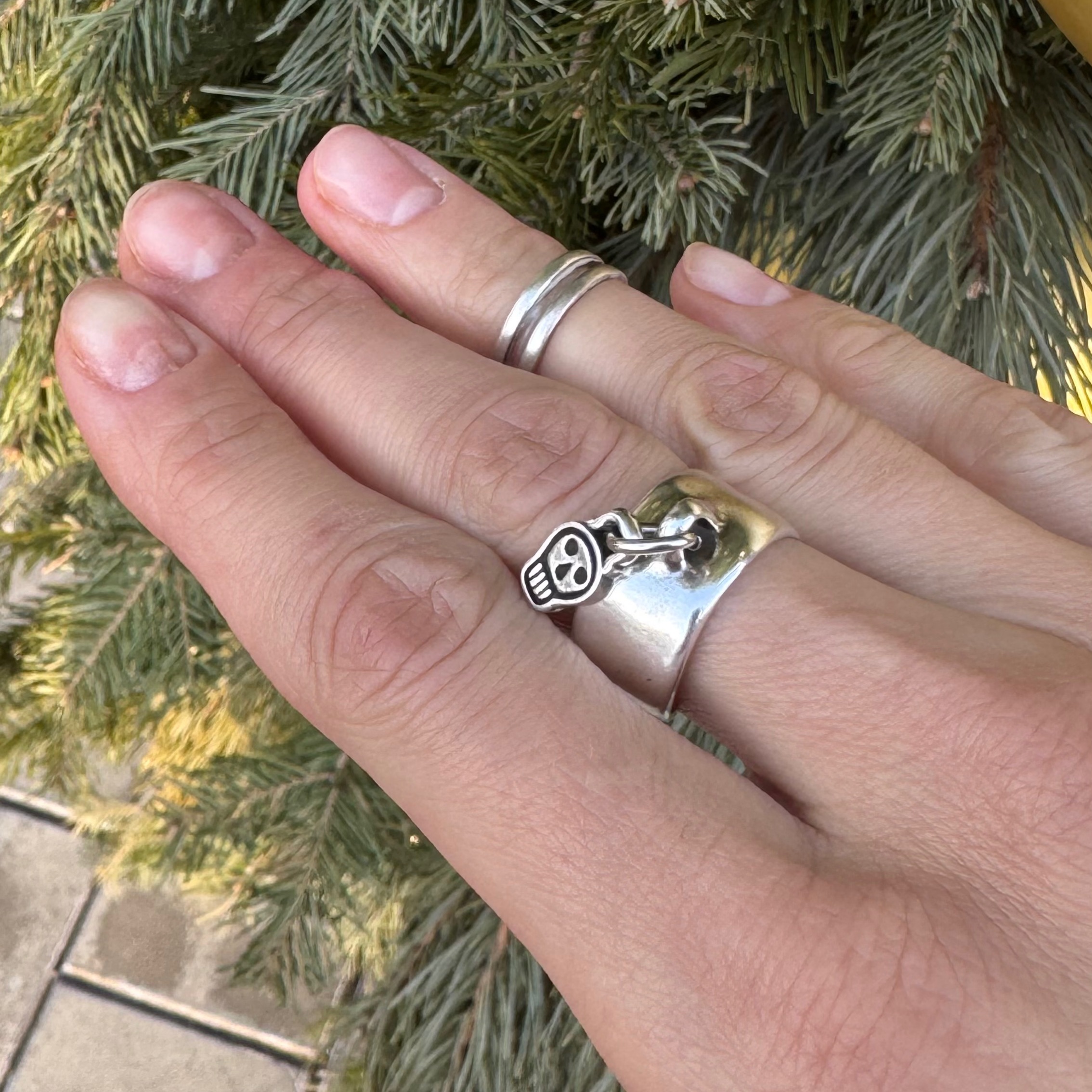 Кольцо от испанского бренда CICLON с подвесом в виде черепа, разомкнутое в размере 17,5-18,5 мм