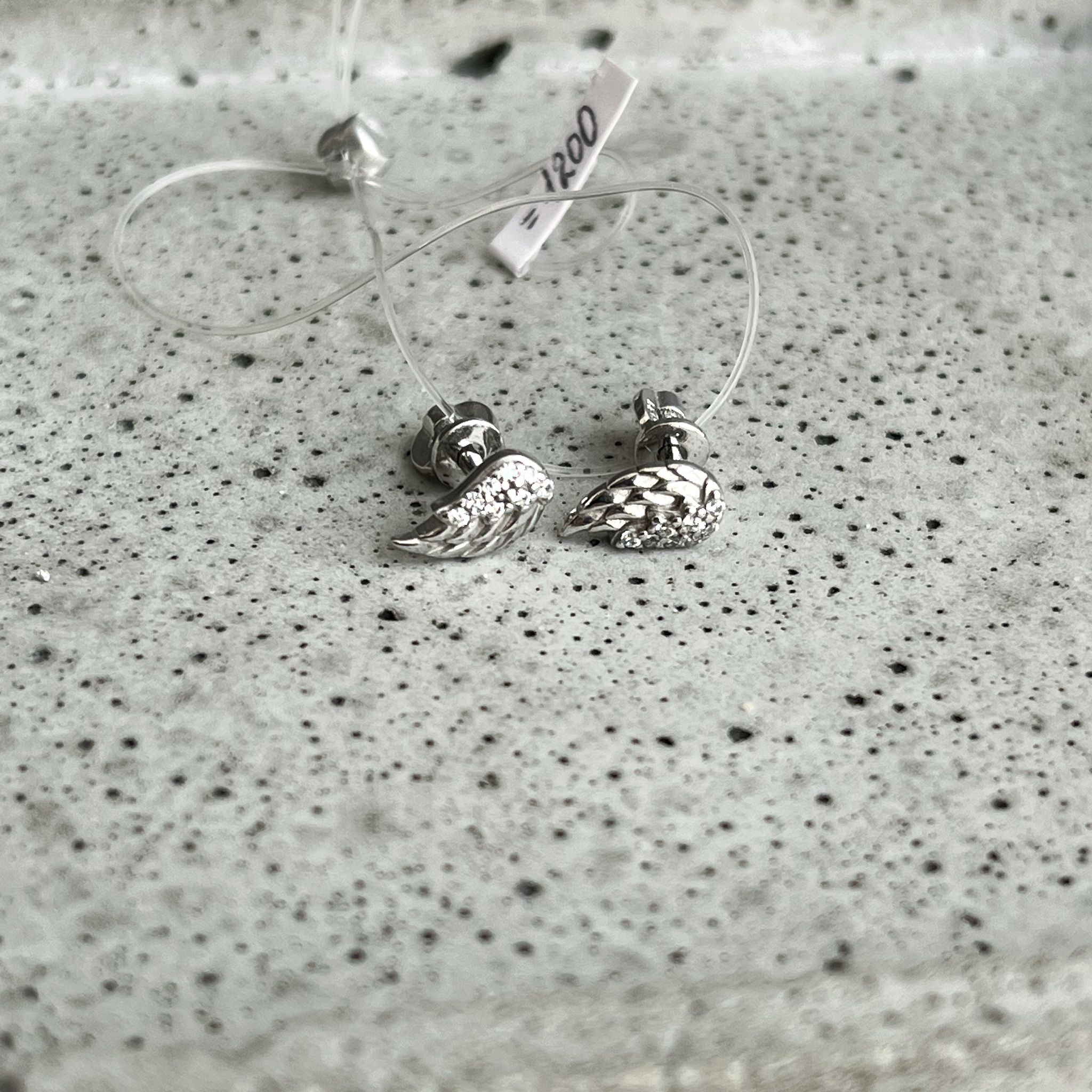 Серьги в форме крыльев с фианитами, размер 0,8 см, выполнены из серебра 925 пробы, вес-1,39 гр.