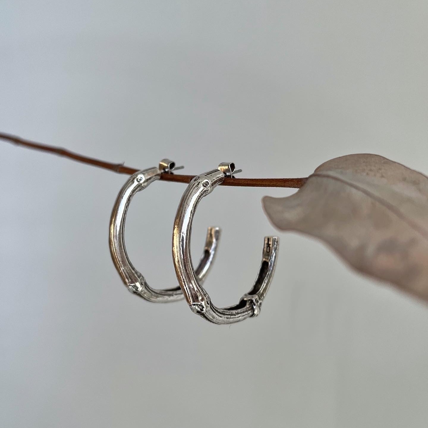 Серьги полукольца Bam boo от французского бренда ORI TAO повторяют структуру бамбука, застёжка-гвоздик, диаметр - 4,0 см.