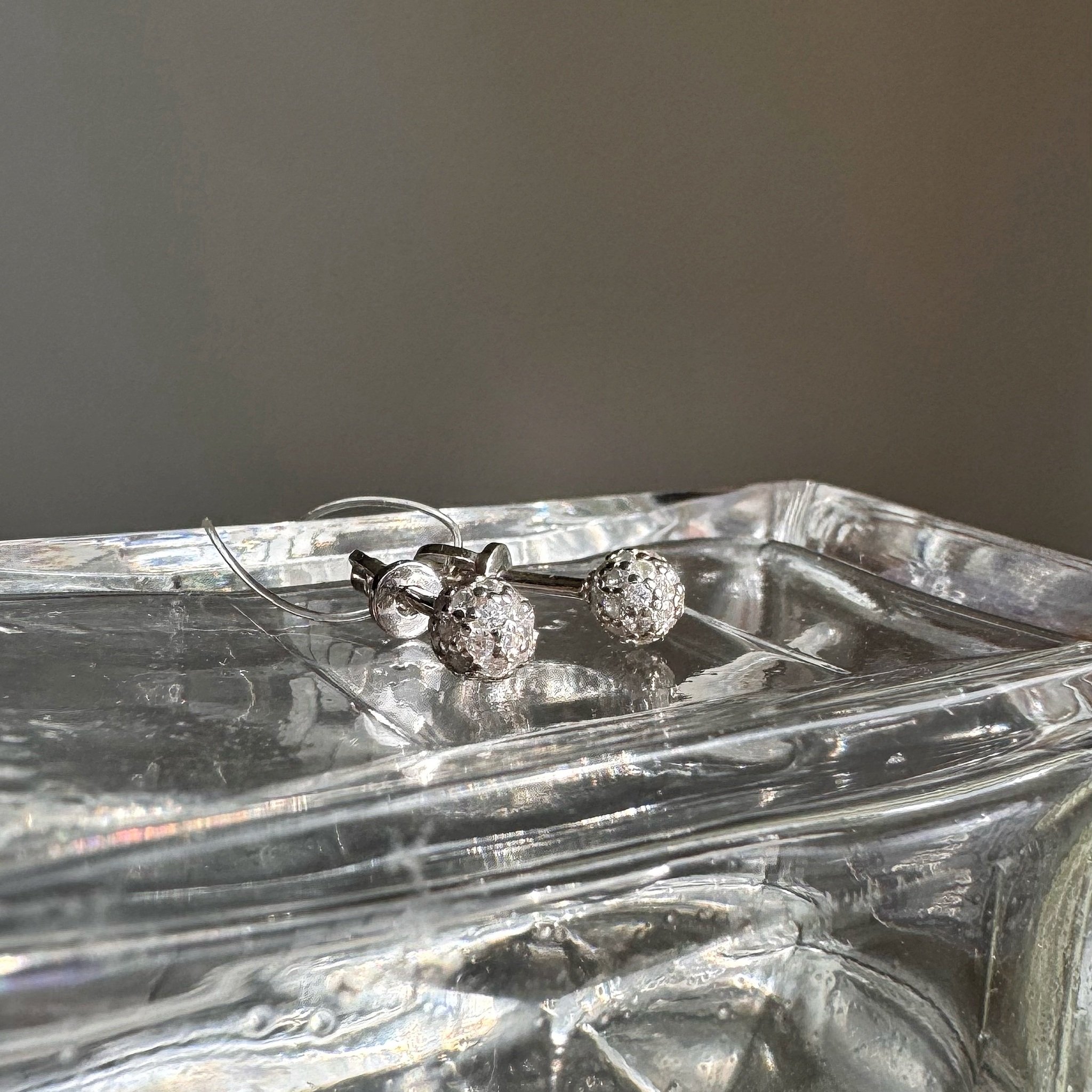 Серьги-пусеты в виде шариков с вставками из фианитов, выполнены из серебра 925 пробы, размер - 0,3 см