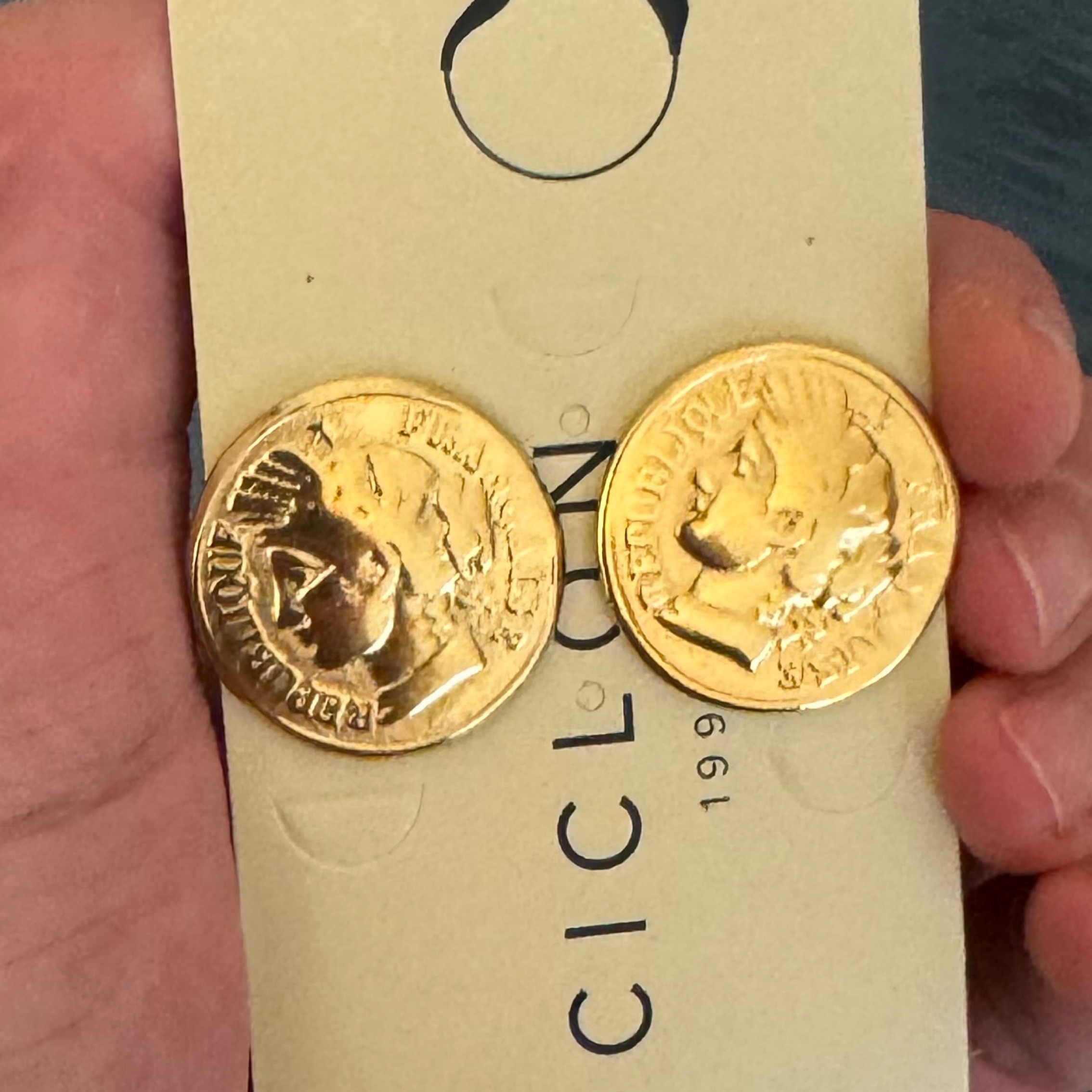 Серьги - медальоны от испанского бренда CICLON, диаметр - 2,5  см, застежка - гвоздик.